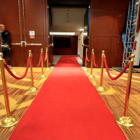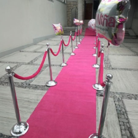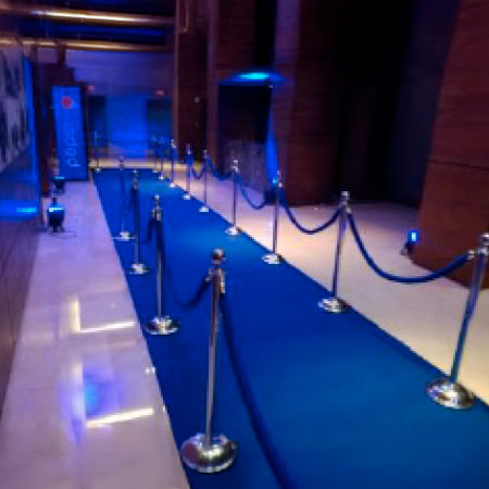 Contamos con una amplia variedad de estilos y colores: alfombras doradas, plateadas, bancarias, pasto sintético y cordones en tonos vibrantes que se adaptan al concepto de tu evento, ya sea corporativo, social o temático.
