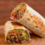 Tortilla de harina rellena de pollo o bistec, con frijoles y queso. Se sirve caliente, con un relleno abundante y sabroso que combina proteínas y carbohidratos en un formato fácil de sostener y comer.